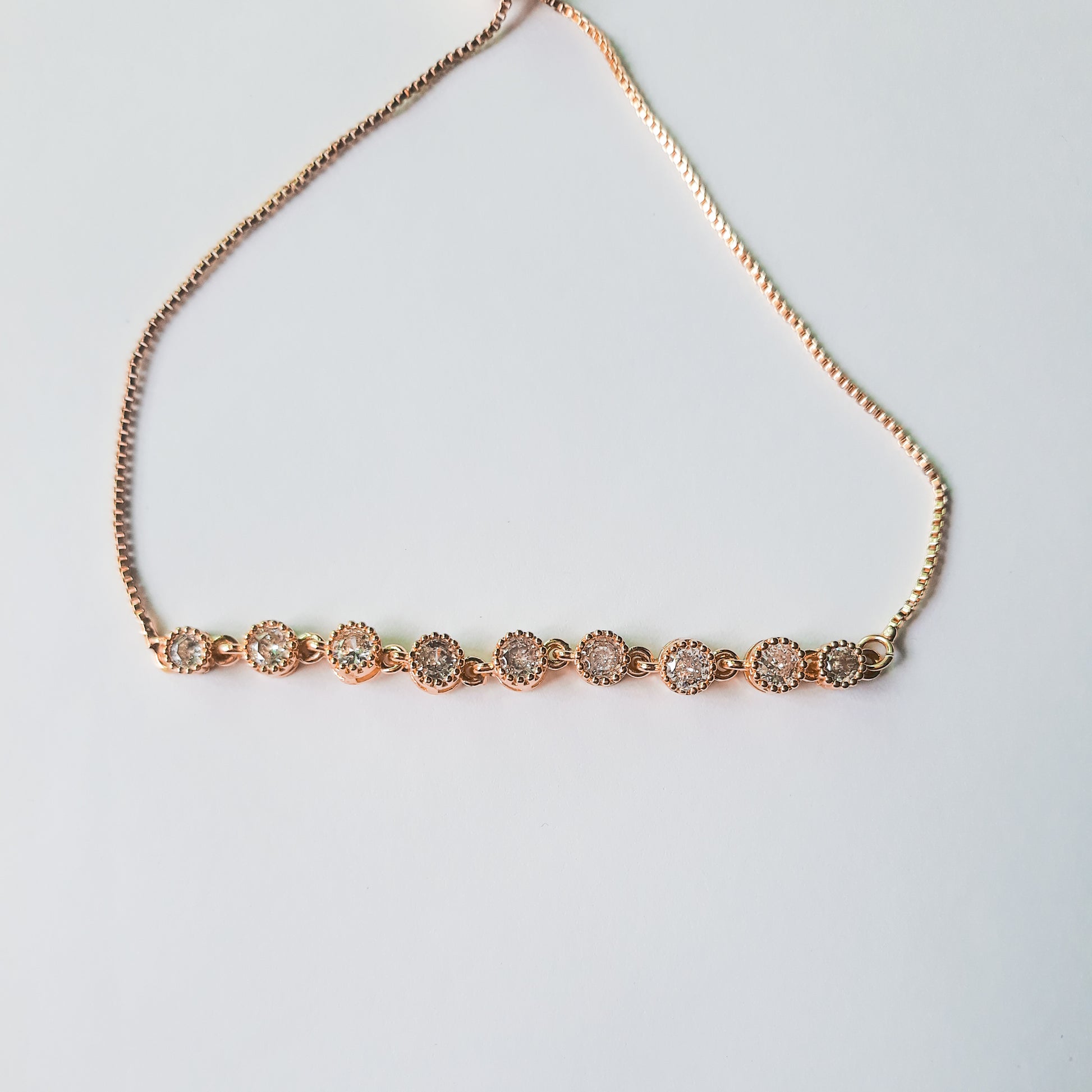Designed with large shimmering rhinestones linked together for a bold yet refined look, this gold-tone bracelet is finished with a sleek box chain and adjustable round bolo clasp for a comfortable fit. A versatile piece that adds a polished touch to both casual and formal outfits.