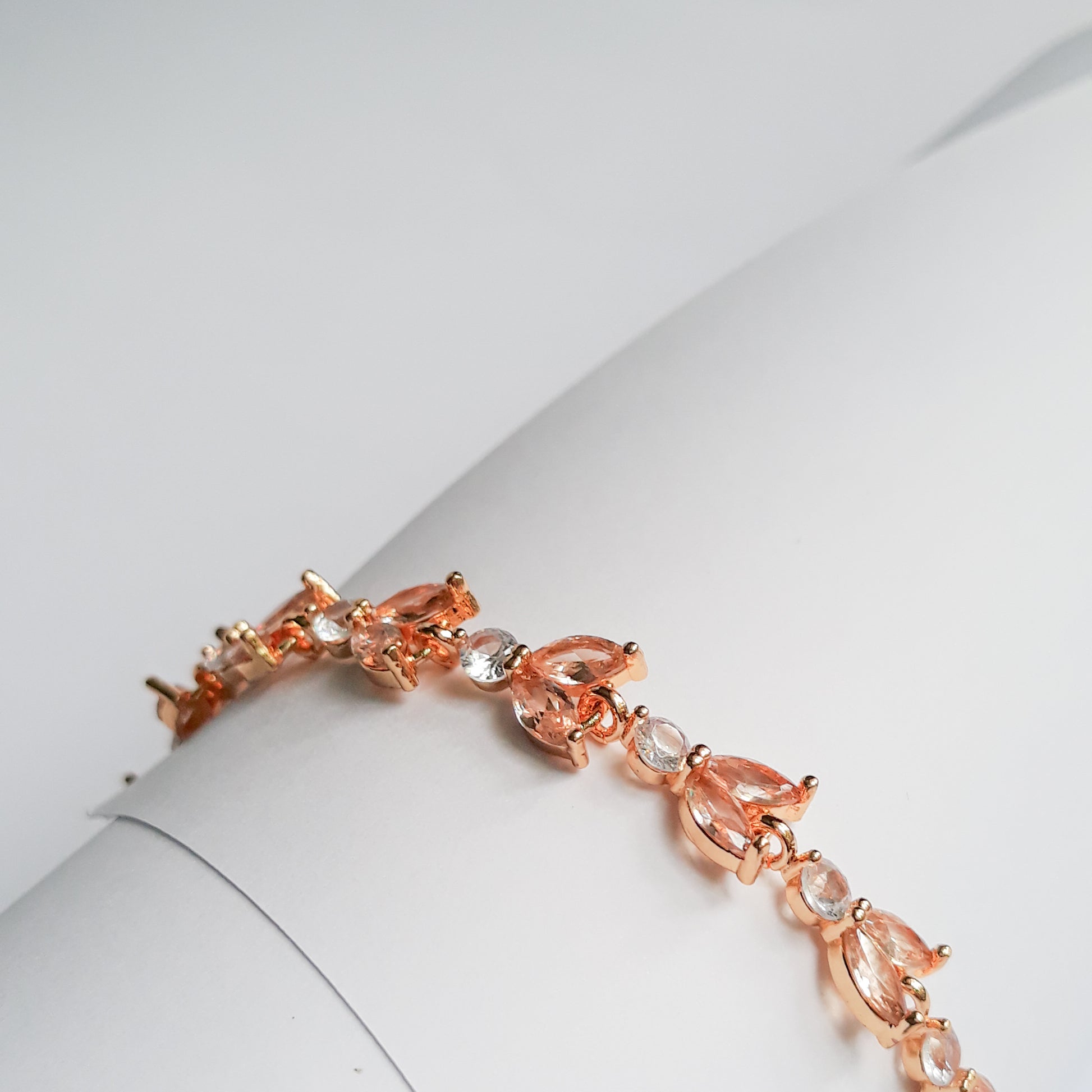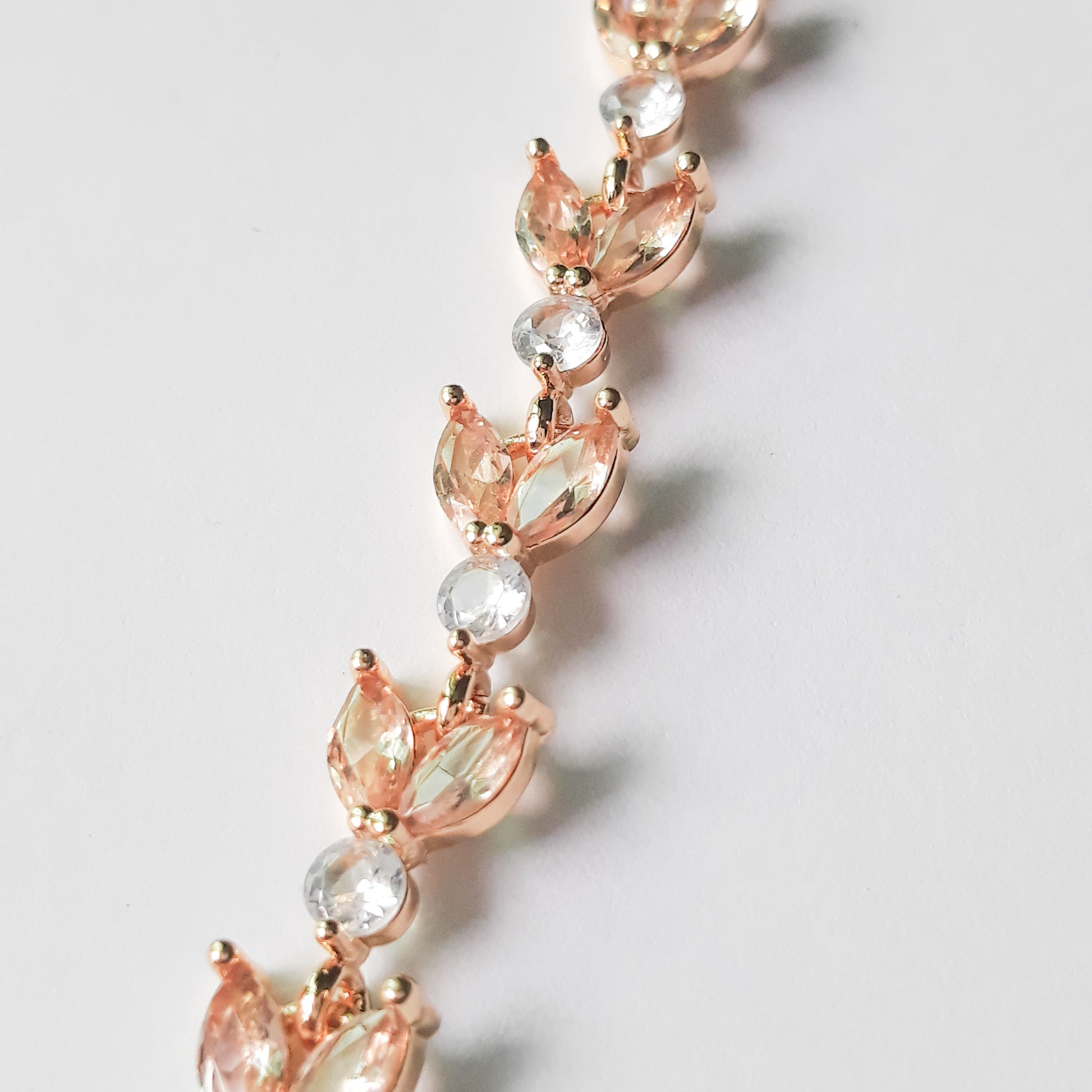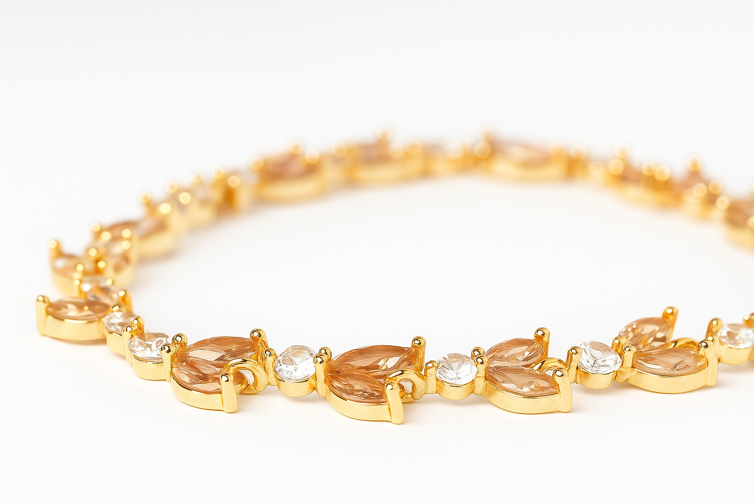 A standout design featuring alternating golden yellow rhinestone leaves paired with round white rhinestones, forming a continuous pattern across the wrist. Set in gold-tone metal and secured with a fold-over clasp, this bracelet delivers a striking blend of color and brilliance, ideal for statement styling.